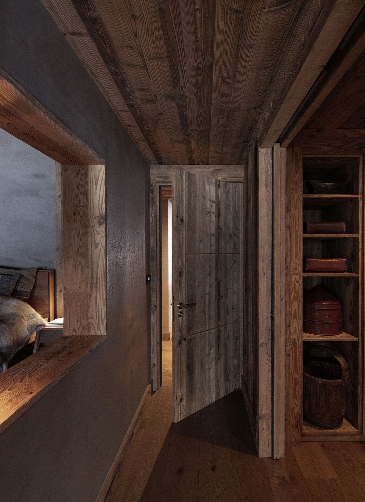 回收木材和石灰灰泥占据了简约的室内设计的主导地位,为空间注入了温暖和丰富的触觉。从结构元素,到硬木地板和墙面覆层,再到其内置家具,该项目的细木工制品是当地工艺的展示,石灰墙的纹理饰面也是如此。与大理石和石头元素相辅相成,原材料的调色板呼应了山区环境的自然元素,也唤起了西藏寺院的禁欲主义氛围。后者因向不丹Drukgyel Dzong修道院致敬的格子栏杆以及工作室为该项目定制的灯笼状烤饼而更加引人注目。实心黄铜灯具名为La Lune,在整个场所使用,其特点是带有金属护罩的纸涂层灯罩,发出温暖、醇厚的光线。