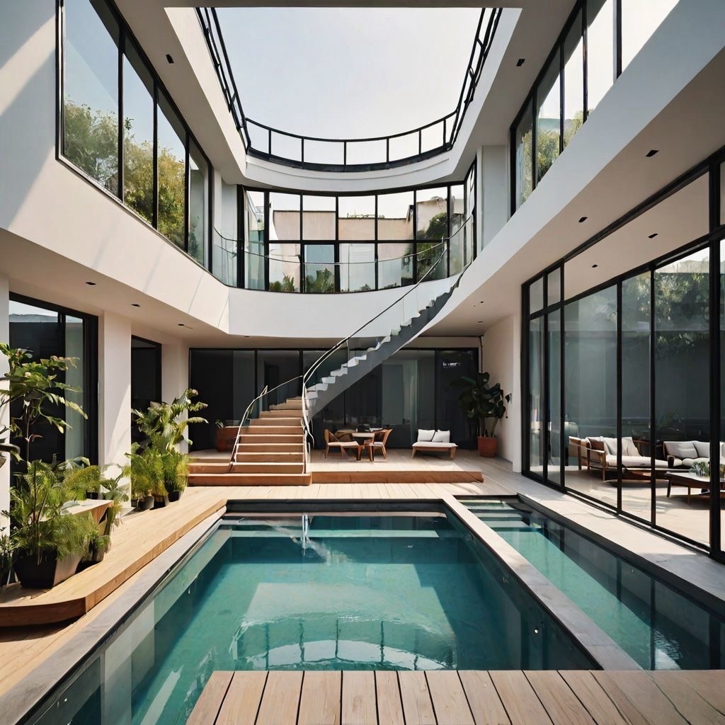一进入别墅,跃入眼帘的便是室内跳高的设计或建筑环绕中心露天的设计方式,这不仅让空间显得更加开阔,还巧妙地引入了自然光线。阳光透过顶部大面积的天窗或露天设计,洒在室内每一个角落,营造出温暖而明亮的氛围。同时,巧妙的私密性设计,保证了居住者的舒适与安全,让每一寸空间都散发出独特魅力。