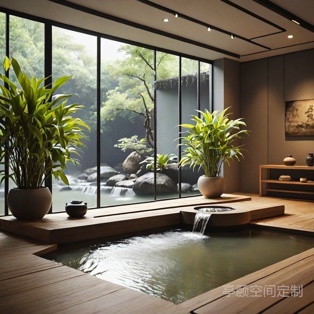 流水是禅意茶餐厅空间中不可或缺的元素。一池清水,几尾游鱼,水声潺潺,仿佛在诉说着生命的律动。水流的动态与周围静谧的环境形成鲜明对比,却又奇迹般地融合在一起,营造出一种动中有静、静中有动的独特氛围。