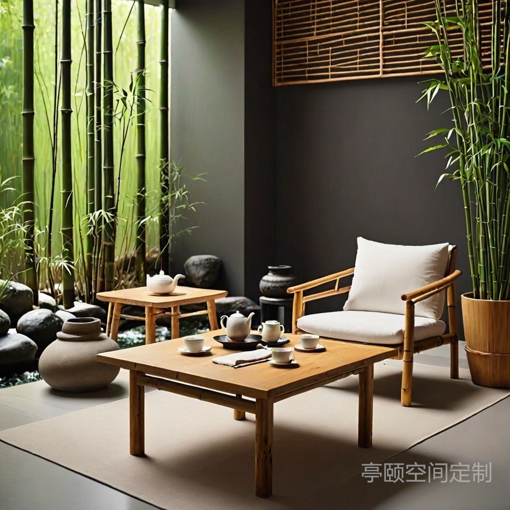 竹子,是茶空间中不可或缺的元素。它青翠欲滴,挺拔而又不失柔和,为整个空间增添了一抹清新的气息。而原木的装饰,则给人一种回归自然、质朴无华的感觉,让人仿佛置身于山水之间,与大自然融为一体。