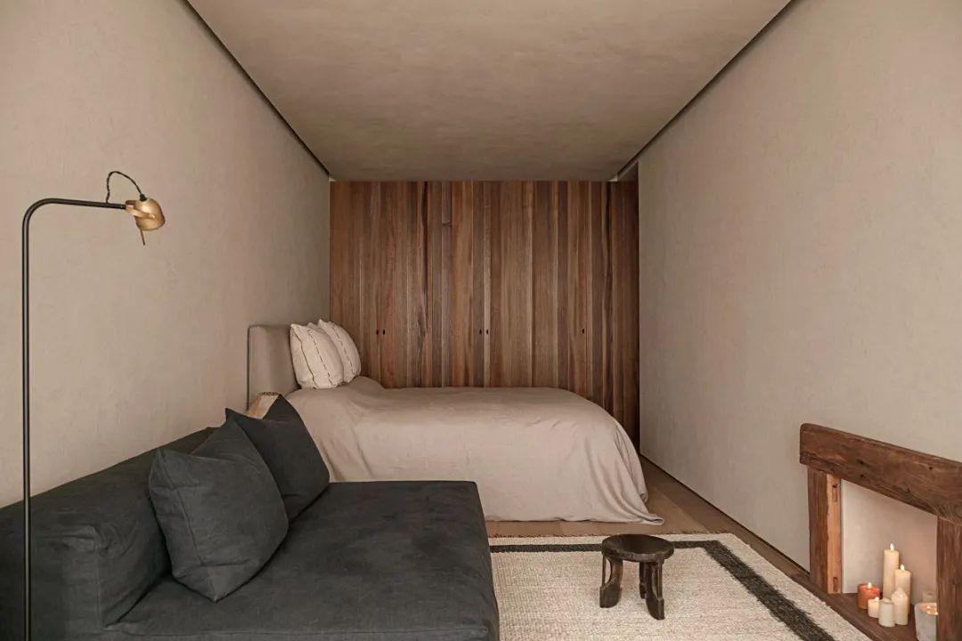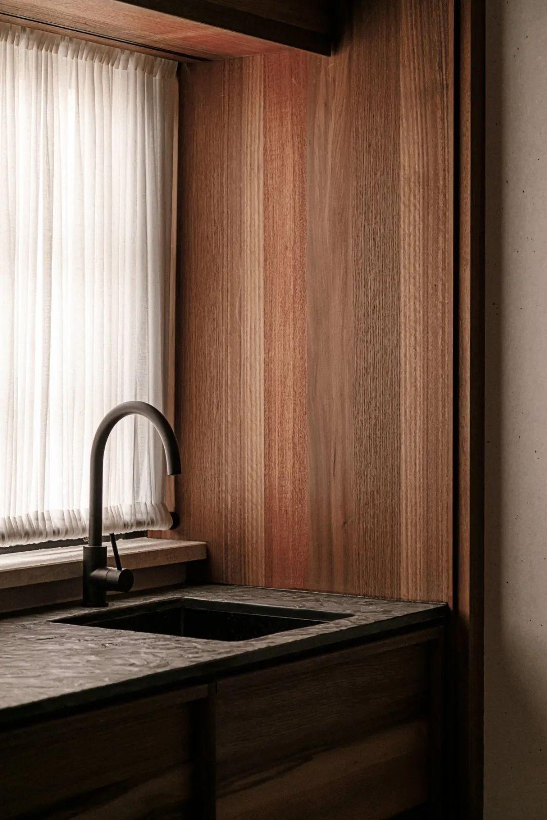 全屋实木饰面,四种木头碳化混搭,用木蜡油保留天然质感。尤加利影、苹果红润、胡桃深邃、塔斯马尼亚橡木的自然痕迹,触感间,木的生长与使用痕迹交织,赋予家居独特韵味,随时间愈发丰富生动。