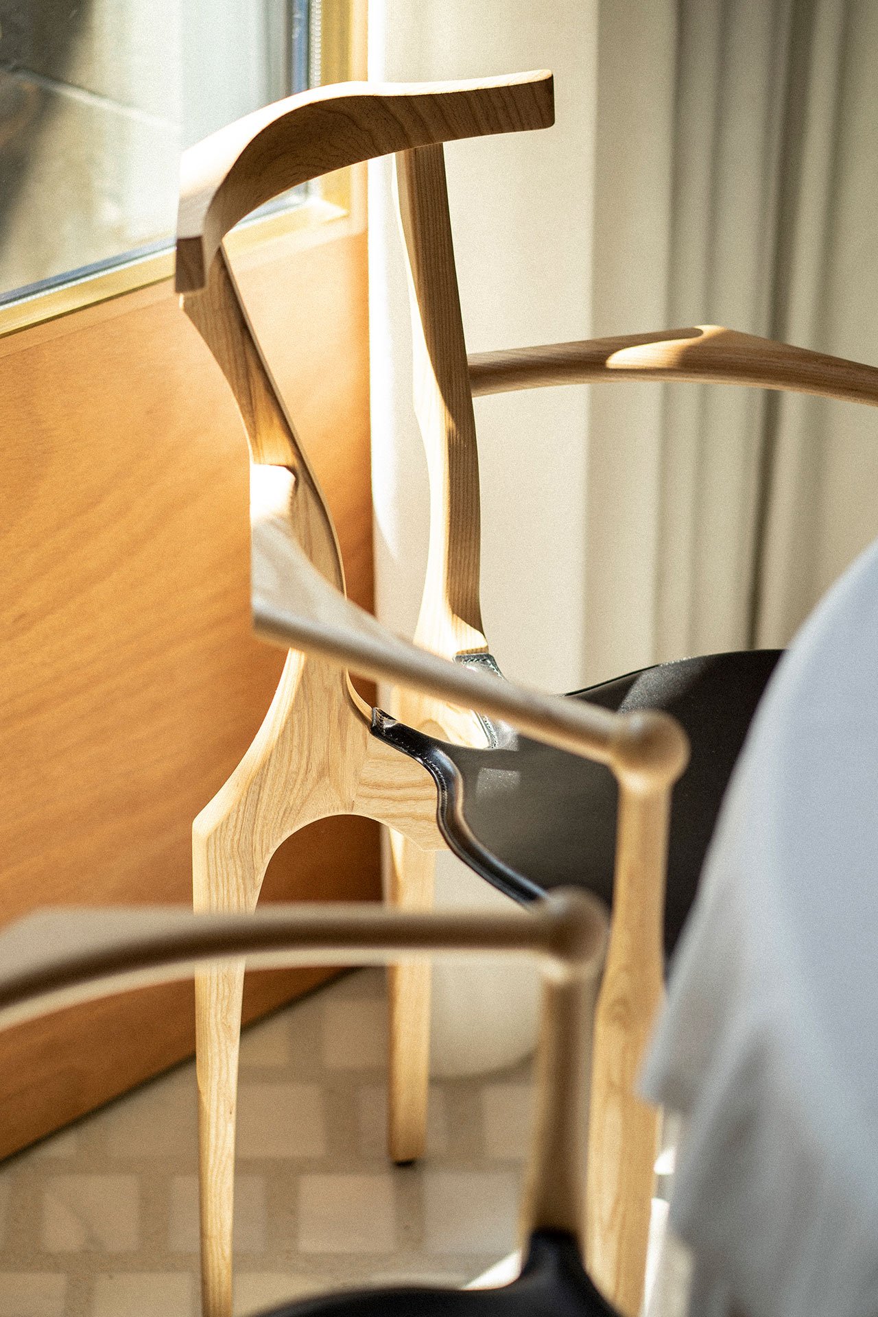 设计师保留了原餐厅陈旧的历史内饰,没有将石板擦干净并重新开始,而是保留了现有的布局并回收了标志性材料,即木材和黄铜,将前者用于墙壁和天花板镶板,后者用于定制家具。建筑材料的再利用是该项目注重工艺的一部分,设计师与当地工匠团队合作,以手工制作的敏感性补充其设计的简约优雅。