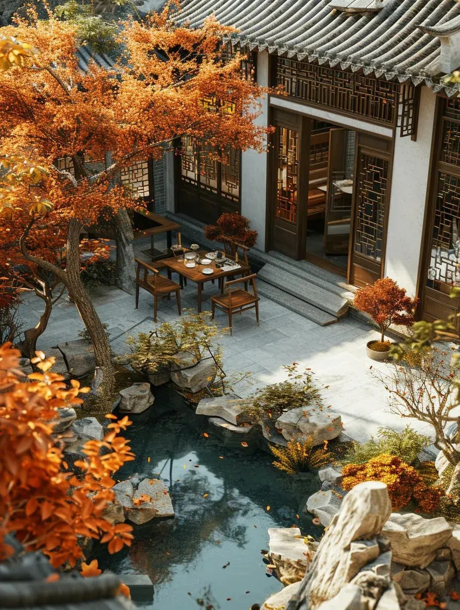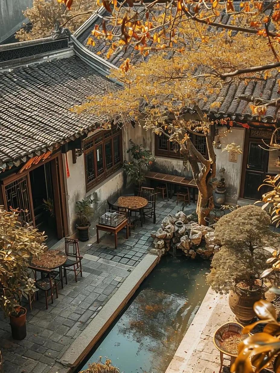 没有“执着心”的较劲儿,没有任何“主义”的困惑,不寻找派别的归属,无宗无派、自由自在、感受自然和创造的快乐,体悟生命的,“采菊东篱下,悠然见南山”的艺术妙境也就随之面来了。所以庭院的审美意象,是一种禅心妙,在时空的画卷里俯仰自得,收放自如,挥酒自由的妙造之笔。