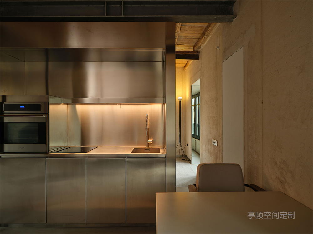 在外部,建筑的原始特征在可行的情况下得到了精心的保留,没有任何迹象表明内部空间得到了振兴。努维尔采用考古方法,精心揭示了这座建筑的各种历史层次,并将其与当代元素进行了对比,最引人注目的是不锈钢的形式,这些不锈钢用于谨慎地描绘或隐藏小厨房、浴室和衣柜。