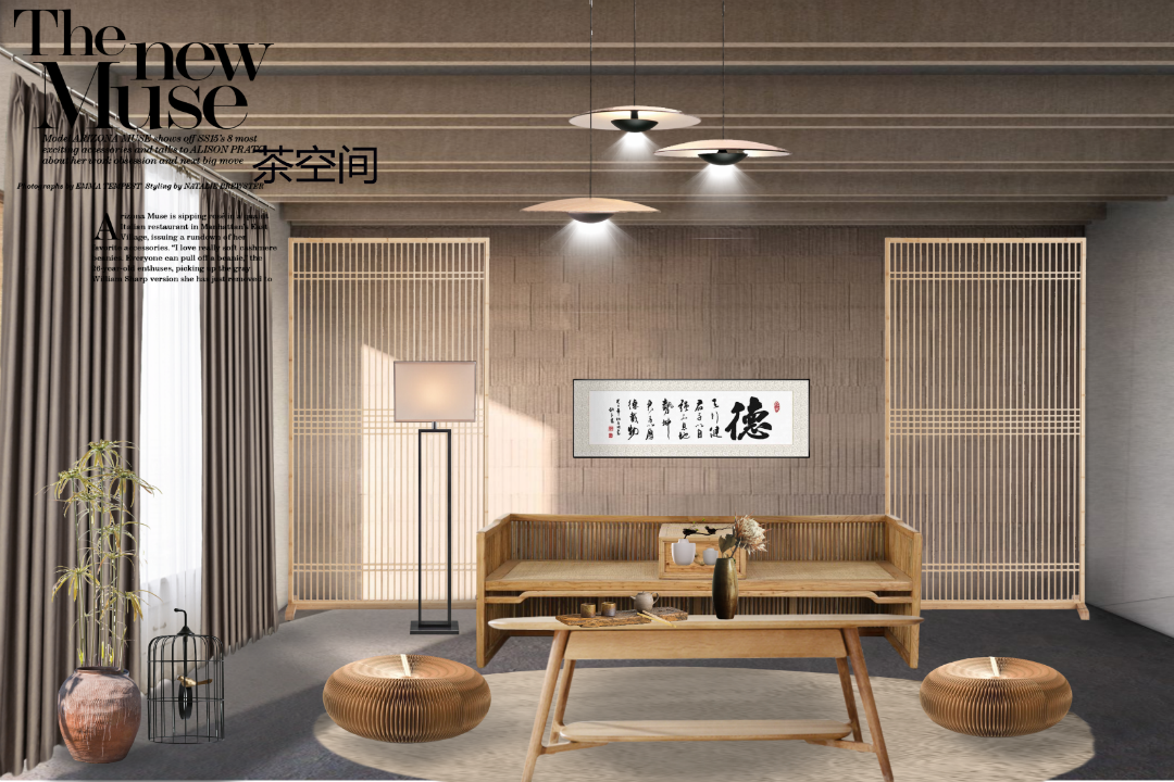 将生活情绪慢慢沉下、积累、升华,转化成简约而不失意境的艺术手法,融入木质桌椅、幕墙等家具设计中,成就天地间一方独属于你的茶空间。用静的艺术记录静的美,茶空间宛若坐观春去秋来的松,容你疲惫,抚你失落,静看心起心落的淡淡痕迹。
