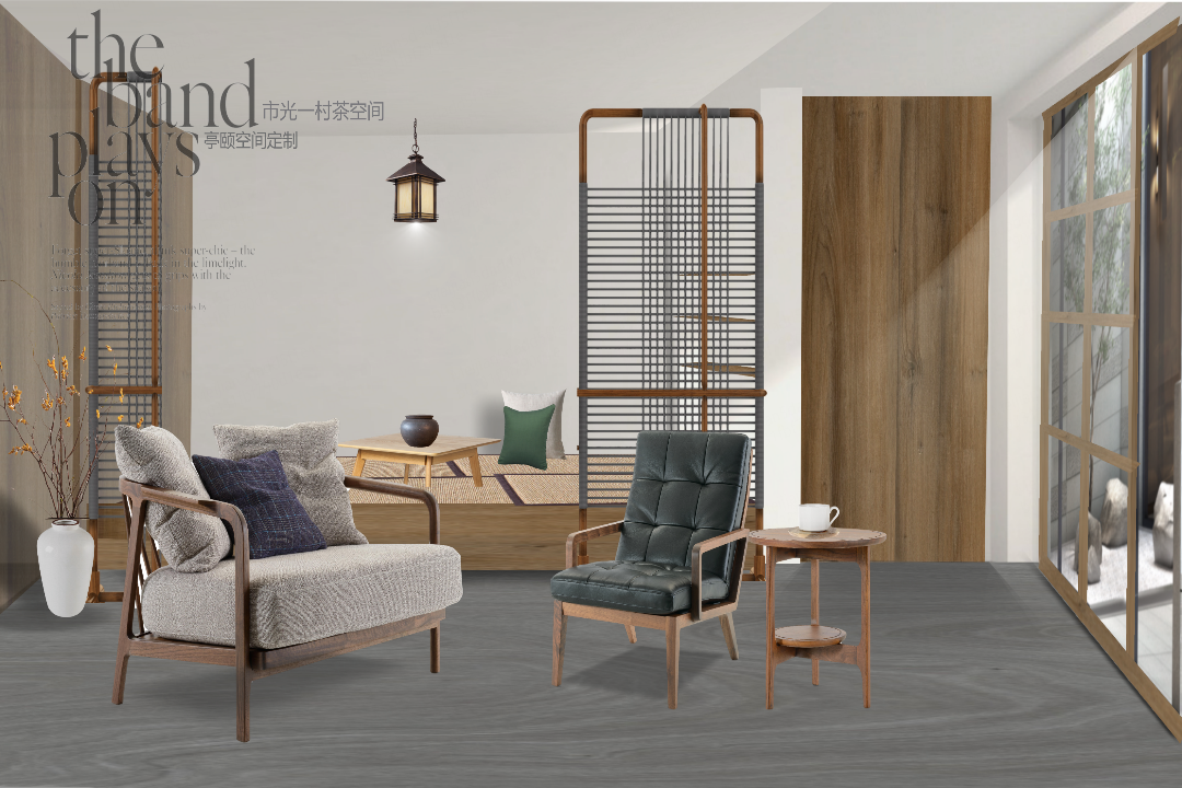茶空间,是当代工业流水线的“叛徒”。设计师开始端详起每一块木料,感受木纹背后的岁月感,让件件家具从机械模型中挣脱,就像树木在天地间自然生长,家具在茶空间中舒展,去享受独有的光影、曲线和色彩过渡。