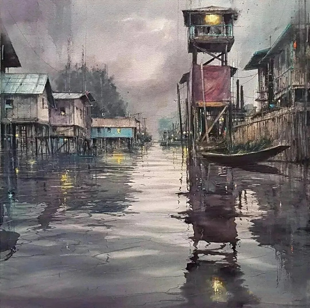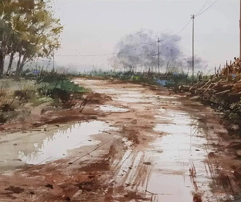 轻盈层叠:水彩颜料因水的流动性形成通透渐变的效果,像是晨雾中绽放的花蕾,每一笔都带着呼吸般的生命力。例如描绘天空时,靛蓝与湖蓝交融的边缘仿佛云絮被风吹散的痕迹。