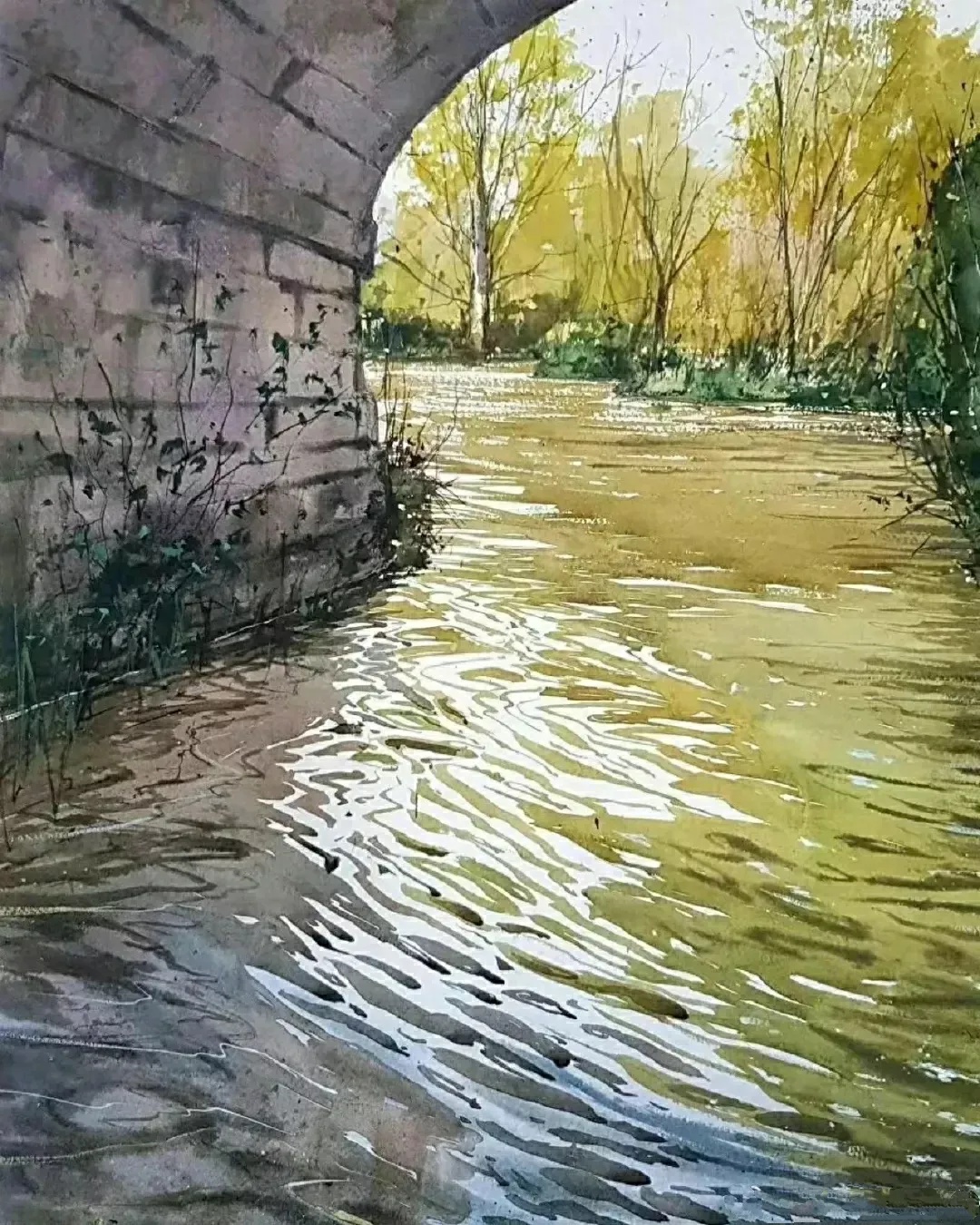 水的折射实验:湿润的纸面对光线具有双重性格——厚涂处吸收光线呈现深沉质感,薄涂部分则像彩色玻璃般晶莹透亮。大师们常利用这一特性塑造物体体积,如葡萄表皮的霜粉效果通过反复洗色达成。