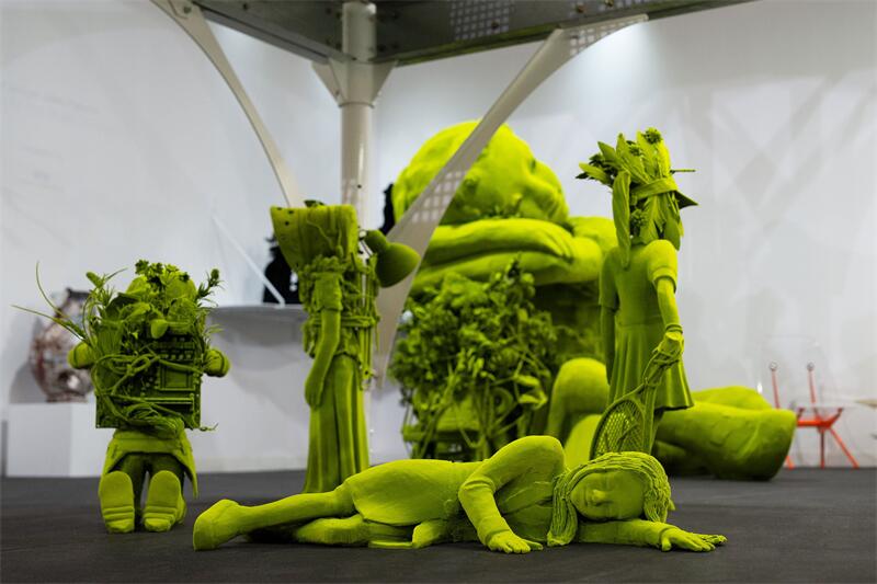 该双年展一直持续到 12 月底;最后,上周他们在Design Miami 2022的Jason Jacques Gallery展位上占据了中心舞台。坐落在一个大型的两层楼装置中,由创新的脚手架制造商Urban Umbrella提供, 画廊的展示汇集了最近的作品和一个前所未见的苔藓巨人,让参观者进入西蒙森迷人的世界。
